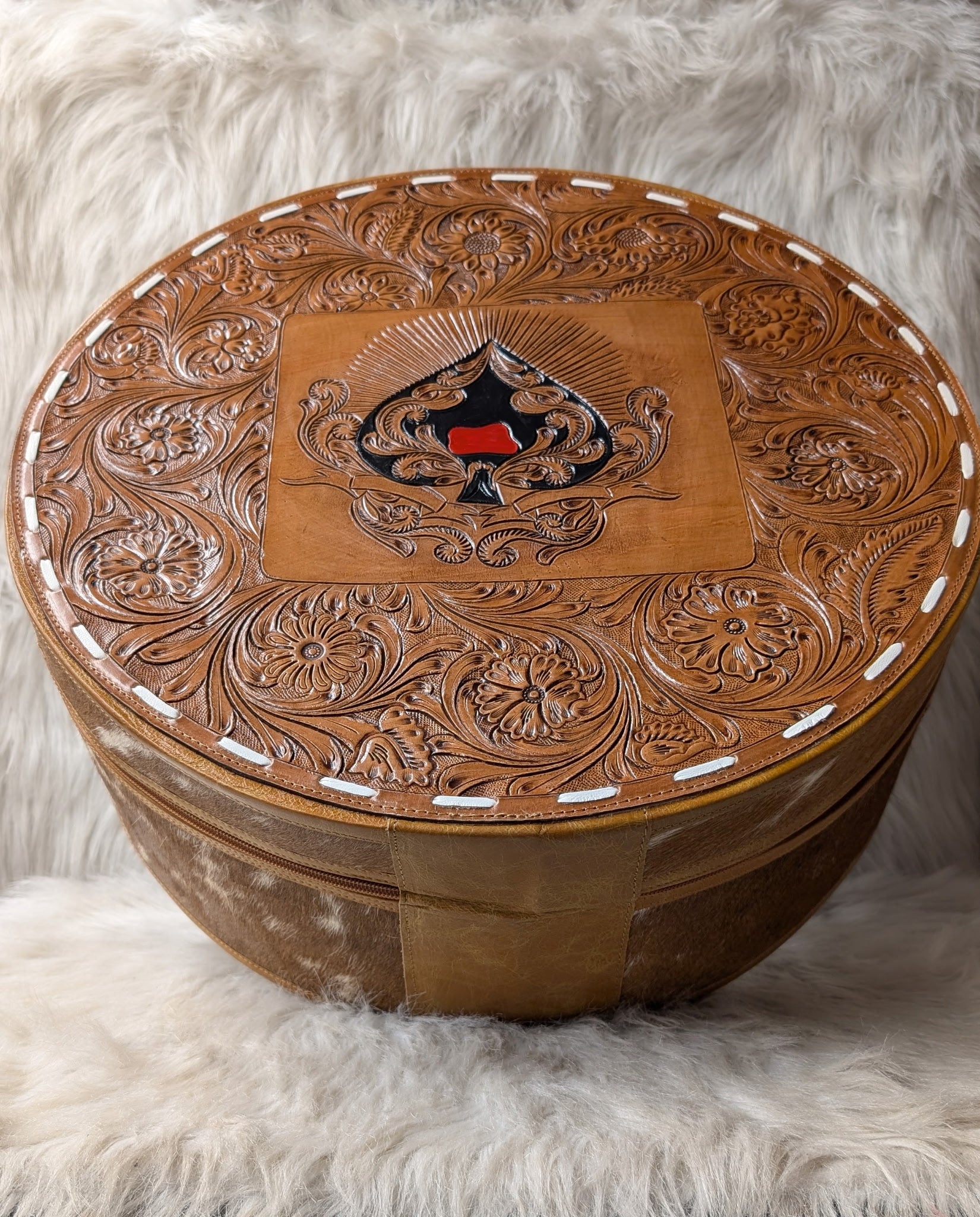 Brown Spades Leather/Cowhide Hat/Rope/Pictures/Other Storage Case