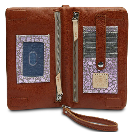 - Included detachable wristlet strap and adjustable woven crossbody strap