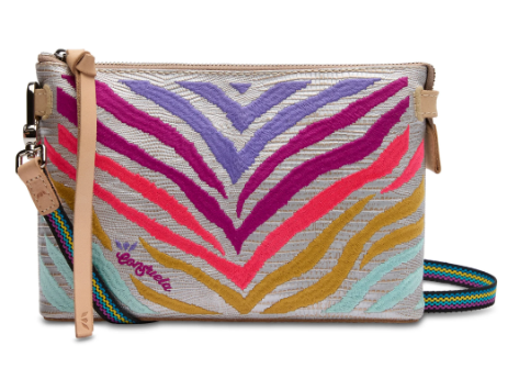 - Includes detachable and adjustable woven crossbody strap
