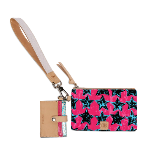 The Combi, a combination of on-the-go accessories, is a new way to carry your keys, cards, and the small stuff together or separately. This colorful wristlet wallet includes a pocket pouch, secure card slot wallet and fits comfortably around your wrist - ready for your next journey.