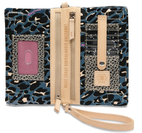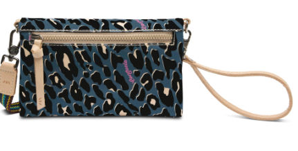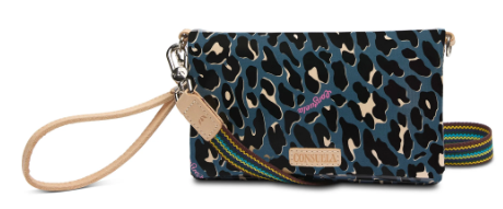 - Included detachable wristlet strap and adjustable woven crossbody strap