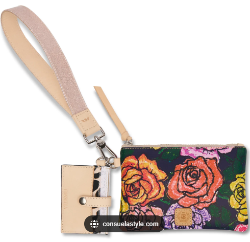 The Combi, a combination of on-the-go accessories, is a new way to carry your keys, cards, and the small stuff together or separately. This embroidered wristlet wallet includes a pocket pouch, secure card slot wallet and fits comfortably around your wrist - and this collection is the first time we have featured embroidery on a Combi!