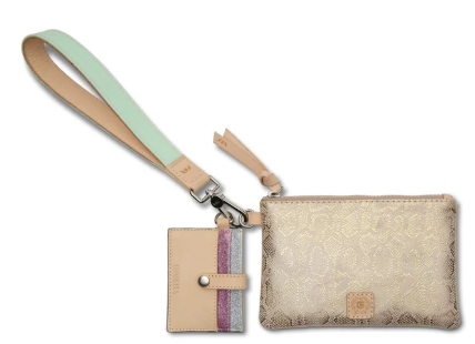 The Combi, a combination of on-the-go accessories, is a new way to carry your keys, cards, and the small stuff together or separately. This textured wristlet wallet includes a pocket pouch, secure card slot wallet and fits comfortably around your wrist.
