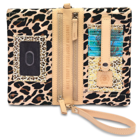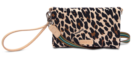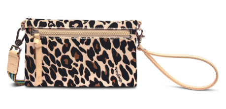 - Included detachable wristlet strap and adjustable woven crossbody strap