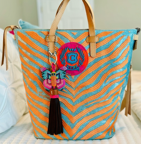 - Includes hand-painted leather bag tag with whipstitch detailing, hand-woven friendship bracelet (colors may vary), and knotted leather tassel charm