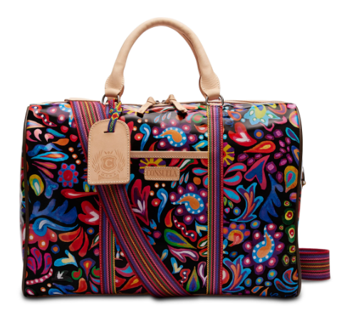 This spacious and colorful duffel is the perfect carry-on for a weekend getaway, making a statement with functionality, durability, and style. Topped with natural leather handles and an adjustable webbing strap, the Jetsetter is crafted to hold its shape and makes traveling easy with ample interior storage and functional pockets.