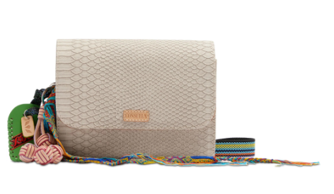 - Adjustable woven crossbody strap