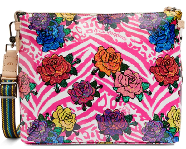 Our Downtown Crossbody is festival and concert-ready! With a removable woven strap, this bag can be worn as a crossbody or carried as an oversized clutch. It features a sleek silhouette in our ConsuelaCloth™ and an interior slide pocket for your phone or small items.