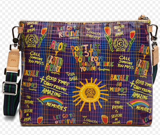 Our Downtown Crossbody is festival and concert-ready! With a removable woven strap, this bag can be worn as a crossbody or carried as an oversized clutch. It features a sleek silhouette in our ConsuelaCloth™ and an interior slide pocket for your phone or small items.