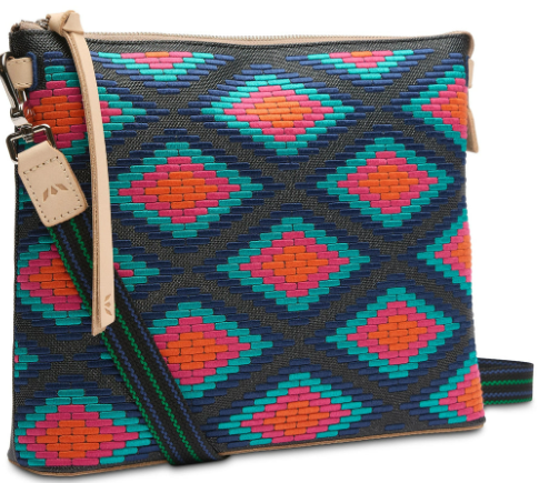 Our Downtown Crossbody is festival and concert-ready! With a removable woven strap, this bag can be worn as a crossbody or carried as an oversized clutch. It features a sleek silhouette in our ConsuelaCloth™ and an interior slide pocket for your phone or small items.