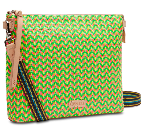 Our Downtown Crossbody is festival and concert-ready! With a removable woven strap, this bag can be worn as a crossbody or carried as an oversized clutch. It features a sleek silhouette in our ConsuelaCloth™ and an interior slide pocket for your phone or small items.