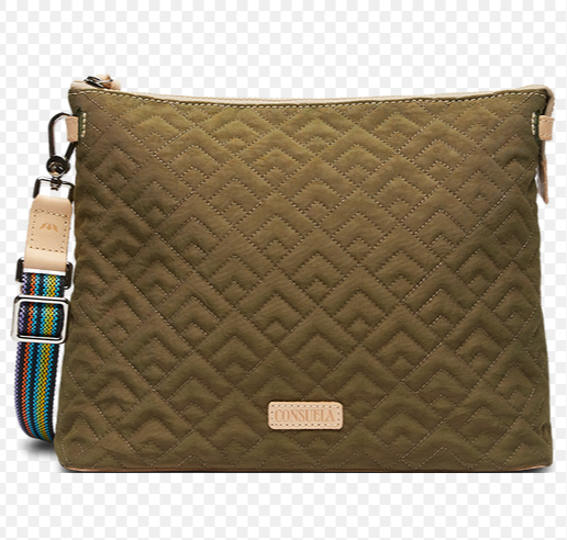 Our Downtown Crossbody is festival and concert-ready! With a removable woven strap, this bag can be worn as a crossbody or carried as an oversized clutch. It features a sleek silhouette in our ConsuelaCloth™ and an interior slide pocket for your phone or small items.
